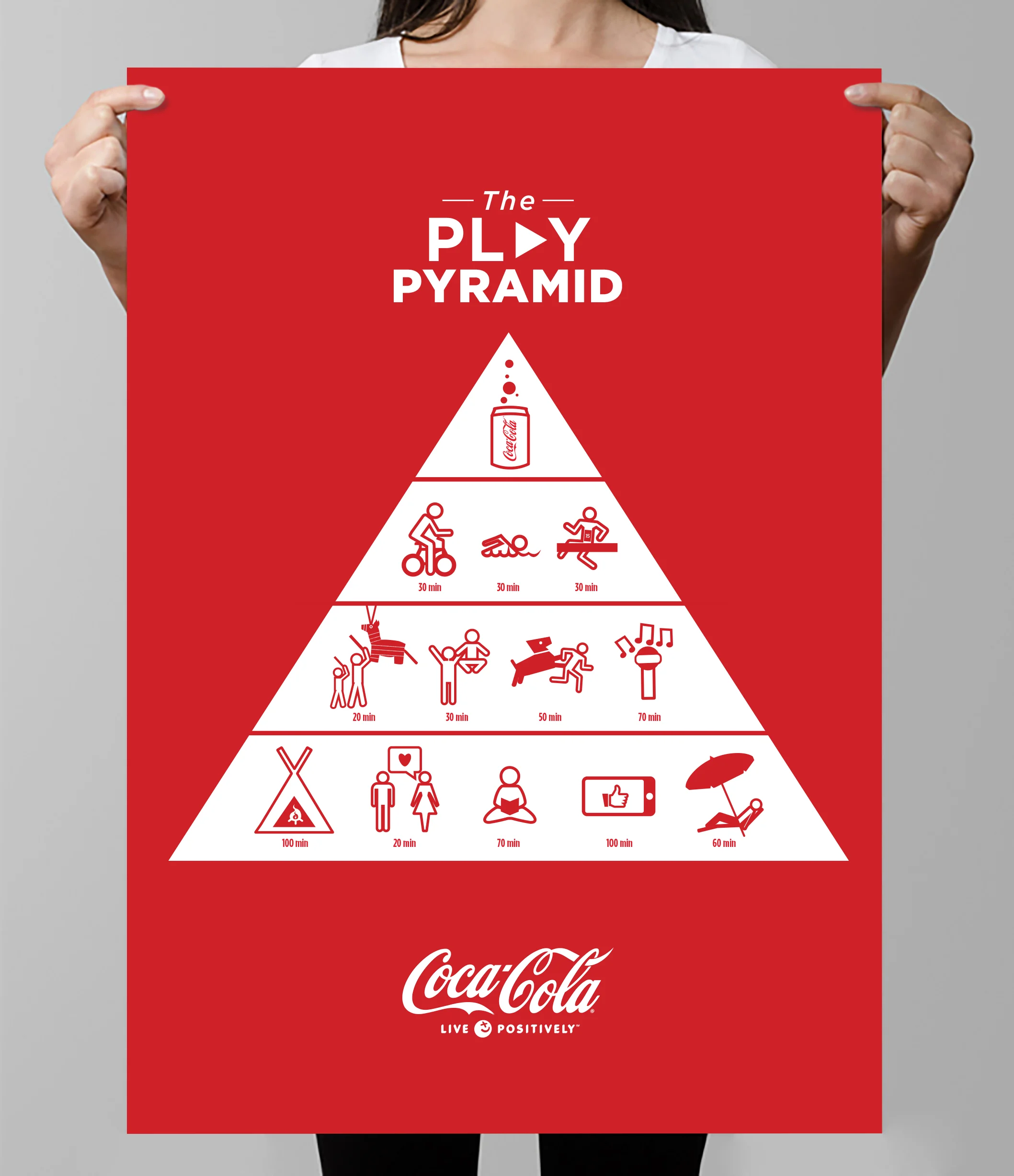 Coke-Cola creates The Play Pyramid, a simple PR / educational tool to promote healthy lifestyle that can be used by media, city officials, community leaders and parents. People can customize their own pyramid based on their interests and share on social media.